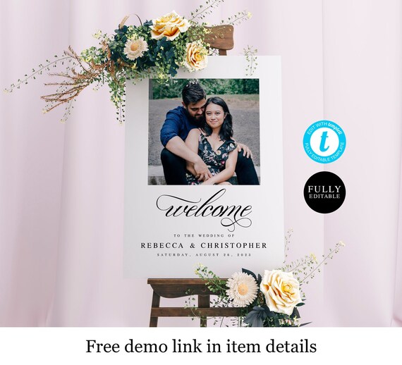Source : pikwizard.comPhoto Wedding Sign Template, Welcome Board Printable, Digital